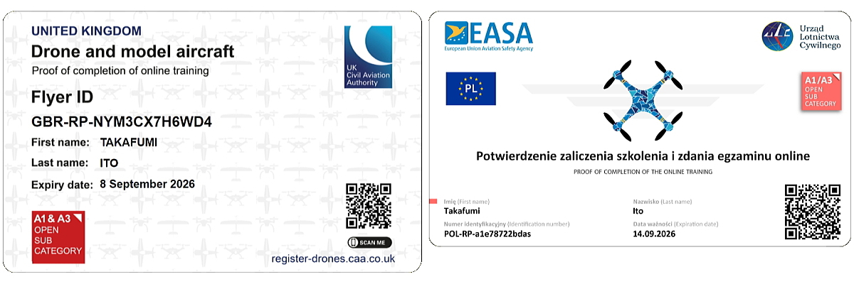 states. According to EASA, if you travel from overseas to Europe to fly a drone, you must register as a pilot in your first country of stay and take the A1/A3 exam to obtain your Remote Pilot qualification. Since it was free for me, I reacquired it in Poland. This allows me to fly drones within EU member states. However, you must thoroughly check no-fly zones and local rules specific to each country beforehand. Flying is entirely at your own risk. |